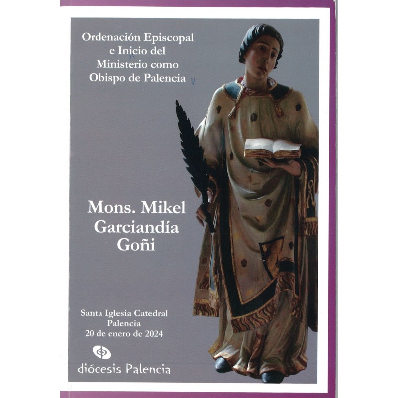 En esta pequeña publicación se recoge el acto de Ordenación Episcopal e Inicio del Ministerio como Obispo de Palencia de Monseñor Mikel Garciandía Goñi. En la larga historia de la Diócesis de Palencia, Monseñor Mikel Garciandía Goñi ocupa el lugar 102 en la línea de sucesión del Episcopologio palentino.